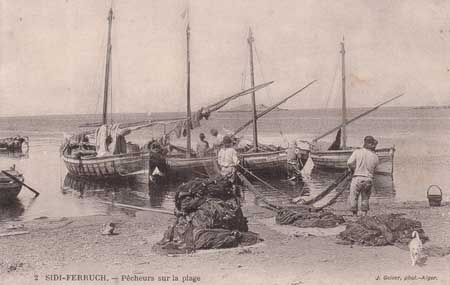 Ce jour là, en un instant, je n'entendais plus le brouhaha du magasin entrecoupé par les annonces d'un haut-parleur, je me retrouvais malgré moi dans une escapade mentale me transportant au bord de la mer où le bruit du ressac sur les rochers, les embruns salés sur mon visage et l'odeur iodée des algues séchées, m’isolaient de la foule qui m'entourait. Je voyageais dans les souvenirs à l'époque de mes huit ans environ et j'entendais distinctement des hommes, torse nu et couverts de sueur, scander: " Oh, hisse! Oh, hisse! " Pour encourager leurs efforts servant à ramener pas à pas le grand filet sur la berge. C'était une fin d'après-midi d'été, le soleil couchant dansait sur le miroir de l'eau devenu calme, le vent venait de s'essouffler, des cris d'enfants jouant sur le terre-plein du stade Marcel Cerdan me parvenaient, la chaleur étouffante ajoutait à la pénibilité de la scène qui se déroulait devant moi.
